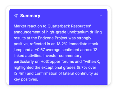 AI-generated analysis that helps you make sense of what's happening — surfacing trends, patterns, and context you might otherwise miss.